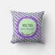 Stijlvolle en HAPPY MOEDERDAG Pillow met paarse harten tegen een groene achtergrond. In het midden is er een paarse florale omringende tekst die de MOM leest die u MAAKT en de MOEDERDAG HAPPY bevindt zich in gekromde tekst onderaan. De tekst is zodat kunt u een naam aan de groet toevoegen. Ideaal geschenk voor Moederdag en vooral voor New Moms.