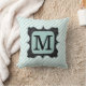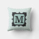 Mint Green Stripes Pattern Zwart Monogram Kussen