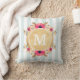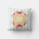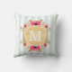 Drijf kussen met gestreepte munt, roze waterverf bloemen en faux gouden folie, aangepast monogram.