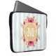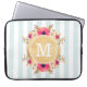 Mint Stripes Waterverf Flowers Faux Gold Monogram Laptop Sleeve