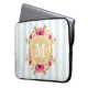 Laptophoes met gestreepte munt, roze waterverf bloemen en speciale monogram voor gouden folie.