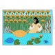 5 x 7 keer meer dan een schilderkaart van Rabbi Me'irah Iliinsky van Miriam, zus van Mozes, die over zijn kleine ark in de Nijl kijkt. Uittocht 2:3-4. De stijl is die van een Egyptisch schilderij, maar Miriam kan geïdentificeerd worden als ze Tzitziot draagt. Geschikt als een Passover-kaart, of voor elke moedige vrouw in je leven.