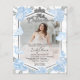 Leg de essentie van uw Quinceañera viering vast met onze tiara en vlinders-thema foto-uitnodigingen. Creëer magische herinneringen met waterverf stoffige blauwe bloemendesign verweven met sprankelende confetti, allemaal gehuisvest in een modern geometrisch lijst. Deze betoverende uitnodigingen zetten de toon voor een onvergetelijke mijlpaalviering.