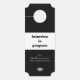 Hang deze "Interview in progress" deurhanger op de interviewkamer. Hier in het zwart getoond met het coördineren van witte en grijze kleur op voor en achter met een kleine zilveren kroon. Persoonlijke lijn voor uw naam van de wedstrijd, uw titel of andere speciale moto of verklaring. Pas dit object aan of koop zoals getoond.