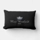 Lumbale stijl kussen getoond in zwart / duif grijs met een afdruk van een zilverkleurige Miss America type kroon met geformatteerde tekst voor u om te personaliseren met uw eigen. Dit object aanpassen.