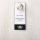 Deze deurhanger is dubbelzijdig en vol met een zilveren kroon onderaan. Bovenranden omgeven door een zilvergrijze rand met voorbeeldtekst van "Knock Please pageant training in sessie". Pas dit object aan je wensen aan met de kleur of uitdrukking die je maar wilt, of koop het zoals het is ontworpen.