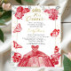 Ontmaskeer de betoverende allure van uw quinceanera-viering met unieke rode uitnodigingen in een rode jurk. Deze op maat gemaakte uitnodigingen, geïnspireerd door weelderige rode bloemen en grillige vlinders, zetten niet alleen de anticipatie op het evenement, maar hint ook naar de prachtige rode quinceanera jurk onthullen. Ze zijn compleet met confetti details en een tiara accent, belichaamt de feestelijke grandeur van de speciale dag.