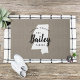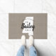Moderne boerenboerengepersonaliseerde doormat met je familienaam in je staatskaart. Faux burlap canvastextuurachtergrond. Klik op Aanpassen om uw eigen tekst en afbeeldingen toe te voegen en een uniek ontwerp te creëer!