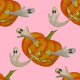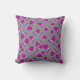 Deze feestelijke kussendoek is voorzien van roze waterverf wanten en stippen op een grijze achtergrond.