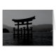 Een klassieke zwarte en witte foto van de torii van Miyajima bij hoogtij