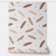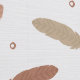 A soothing pattern of soft brown, beige, and tan feathers scattered on a textured white background, accented with small circular details for elegance.