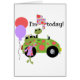 Mod Frogs 4th Birthday tshirts, mokken, kaarten, stickers, canvas tassen, en meer met veel polka dots, ballons, een koele groene auto, en groene kikkers!