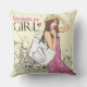 Stijlvol decoratief werpkussen met een mode meisje met tas in schetsstijl op een stadsachtergrond.