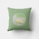 Mode gooien kussen met een prachtig zwanenmeer. Het zwanenmeer ligt in het centrum met een polka dot diamantpatroon op een groene achtergrond.