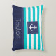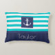 Nautische accentuleuze kussens met turquoise & marvy blue striped patroon en aanpasbare tekst.