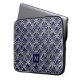 Deze elegante laptophoes is voorzien van een blauw en faux zilveren deco-ventilatorpatroon, dat op maat van uw monogram is gemaakt.