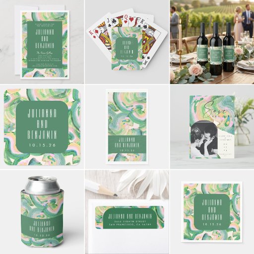 Modern Green Abstract Watercolor Wedding SuiteOntworpen door Opal Ellery