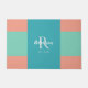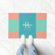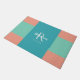 Modern Blauwgroen, blauw en koraalroze monogram Deurmat