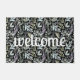 Moderne Blauwgroen Botanische Patroon Witte Welkomstdeurmat. Vette typografie.