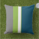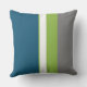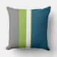 De hedendaagse minimalistische gooi kussen met blauwgroen blauw, muis grijs, kalkgroen en wit gestreept kleurenblokvormig ontwerp. Origineel en modern interieuraccent voor het versieren van de meester- of logeerkamer, woon- of huiskamer, man- of vrouwengrot, hogeschool, condo, studio of appartement, RV of kampeerwagen, boot of jacht.