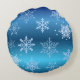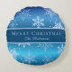 A sprinkle of pastel blue snowflakes feature on this simple and elegant throw pillow. Please edit the greeting and name to make it perfect for you. Please note this does not have a metallic finish. The printed colors create this effect. Enjoy.