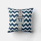 Modern Blue White Gray Monogrammed Chevron Kussen