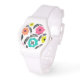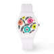 Modern en gedurfd bloempatroon in zomerkleuren met zwarte bladdecoratie op gepersonaliseerd horloge.