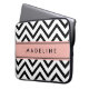 Modern Chevron Pattern & Name Pink, Black & White Laptop Sleeve