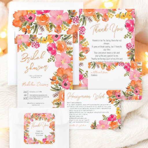 Bold Boho Watercolor Orange Pink Floral BridalOntworpen door Audrey Chenal