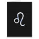 Een zilveren chroomachtig Leeuw-sterrenbeeldsymbool op een zwarte slangenhuid stijl decoratieve achtergrond. Een geweldig stedelijk, autothema klassiek uitziend verjaardagscadeau idee.