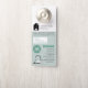 A unique green cleaning logo business door hanger A perfect modern style design for professional cleaning themed business branding. This elegant business door hanger is ideal for cleaning services, housekeeping, janitorial, maids, decluttering service and commercial cleaning services. A simple and professional way to introduce your cleaning business and promote it. Personalize your details to create your own unique house cleaning service business door hanger. Use this logo or replace with your own!
