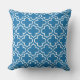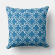 Stijlvolle kussen hebben een modern decoratief Marokkaans quatrefoliepatroon in wit. Pas de blauwe achtergrond van de kobalt aan om met uw openluchtdecor te coördineren.