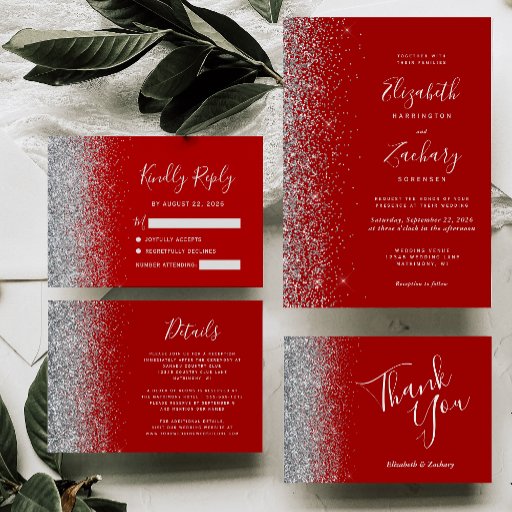 Crimson Red Silver Glitter Wedding SuiteOntworpen door Akhates Designs