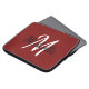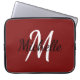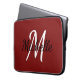 Laptop hoesje met een rode achtergrond en een wit aangepast monogram, eerste initiaal en voornaam.