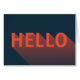 Stuur een hallo naar familie en vrienden met deze leuke donkerblauwe kaart met een modern abstract ontwerp van een oranje "Hallo" met een lange schaduwgradiënt. *Gelieve te merken op dat het Zazzle Watermerk dat in de gezoemvoorproef verschijnt NIET op het definitieve gedrukte product zal verschijnen. © Rosewood en Citrus