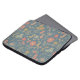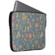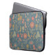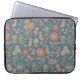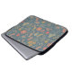 Deze laptophoes heeft gestileerde bloemen in koraaltinten en olijfgroen op een denimblauwe achtergrond.