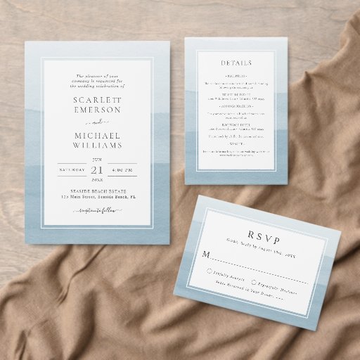 Dusty Blue Watercolor Ombre Wedding InvitationsOntworpen door Wendi R