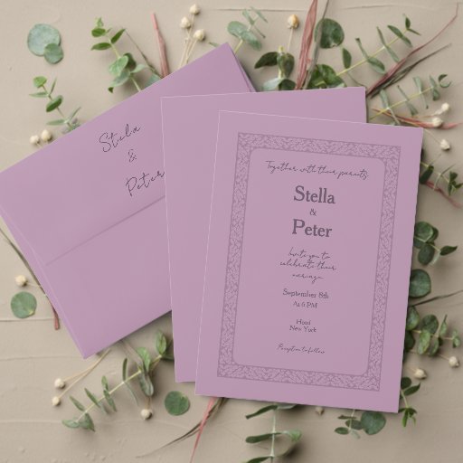 Streamline your wedding guest responses with this chic and minimalist RSVP card. This response card features a romantic handwritten "Kindly Reply" header set against a soft mauve purple background. The layout is modern and functional, including a dedicated section for guests to note their dietary restrictions - a thoughtful detail for planning your reception menu. Design: Modern minimalist with elegant calligraphy. Colour Palette: Dusty rose, mauve, muted purple, and charcoal grey. Features: Clear "Accepts/Declines" checkboxes and lines for dietary needs. Customisation: Easily edit the "reply by" date and other details using the template fields.