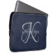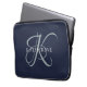 Modern Elegant Monogram Script Navy Blauw Laptop Sleeve