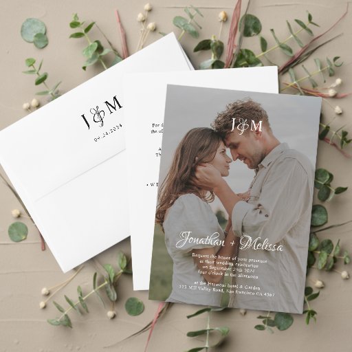 Modern Elegant Script Overlay Foto Bruiloft Wijn Label.