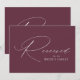 Modern gereserveerd teken met "Gereserveerd" weergegeven in een elegant wit kalligrafiekscript met een wijnachtergrond of aangepaste kleur. Personaliseer het manuscript gereserveerde teken met uw douanetekst (momenteel getoond met de Familie van de "Bride"). Het ontwerp herhaalt zich op de rug van het teken. Gebruik het paarse trouwbord om stoelen of tafels te reserveren bij je trouwceremonie, receptie, repetitief diner of andere speciale evenementen.