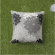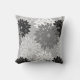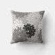 Moderne foto van een traditionele Japanse florale kimono-afdruk gooit kussen met een gestileerde bloem in grafietschoppen en licht grijs/grijs, zwart-wit op middelgrote grijze achtergrond