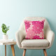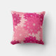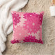 Moderne foto van de traditionele Japanse florale kimono-drukkerij gooit kussen met een gestileerde bloem in tinten van koraalroze en bruinkool op een pastelroze achtergrond