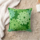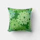 Moderne foto van de traditionele Japanse florale kimono-printen gooit kussen met een gestileerde bloem in tinten groen en aqua op een diepe groene achtergrond