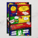 Vier je vrijgezel- of vrijgezellenfeest in stijl met dit esthetische leuke moderne stripboek. De uitnodiging is kleurrijk en vertelt een retro stripverhaal met spraakbubbels. Het show een verhaal met ringen, feest, Las Vegas, kaarten, gokken, feesttijd, alles blijft in Vegas en een bruidspaar silhouet. Personaliseer het met uw gegevens, uw monogram voor uw buitengewone cartoon.