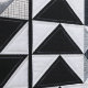 Modern throw pillow with geometric contemporary pattern featuring textured fabric-look patchwork design. Black, white, and grey shapes with quilted and smooth fabric textures. Contemporary abstract mid-century style perfect for modern living room, minimalist decor, or Nordic aesthetic. Monochrome design.