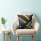 Een opvallend geometrisch abstract ontwerp met een dynamisch samenspel van vormen en kleuren. Het kunstwerk maakt voornamelijk gebruik van gedurfde en levendige tinten blauw, variërend van diepe marine tot lichtere keramiek, verweven met contrasterende elementen van rijk goud en zwart. Hoekige, overlappende vlakken creëer een gevoel van diepte en beweging, met scherpe lijnen en gestructureerde oppervlakken toe te voegen aan de visuele complexiteit. Vooral de gouden segmenten vallen op met een metallic glans, waardoor de compositie een luxueus tintje krijgt. Dit moderne en verfijnde ontwerp voegt een gedurfde verklaring toe aan elk werpkussen, waardoor het een perfect accentstuk is voor hedendaagse interieurs.