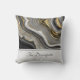Een kussen met een abstract ontwerp met een agaat geode mineraal patroon. Goud, grijs, wit en zwart wervelen samen vormen elegante golven van kleur. Perfect voor het overbrengen van een sfeer van klasse en elegantie.