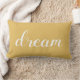 Een moderne, stijlvolle aanraking voor uw thuisdecor. Dit inspirerend kussen herinnert je eraan dat je "droomt" Het lichte kussen van goud kenmerkt het citaat met een droom in een moderne witte typografie.