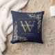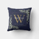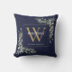 Modern Goud Monogram Groenelementen Navyblauw Kussen